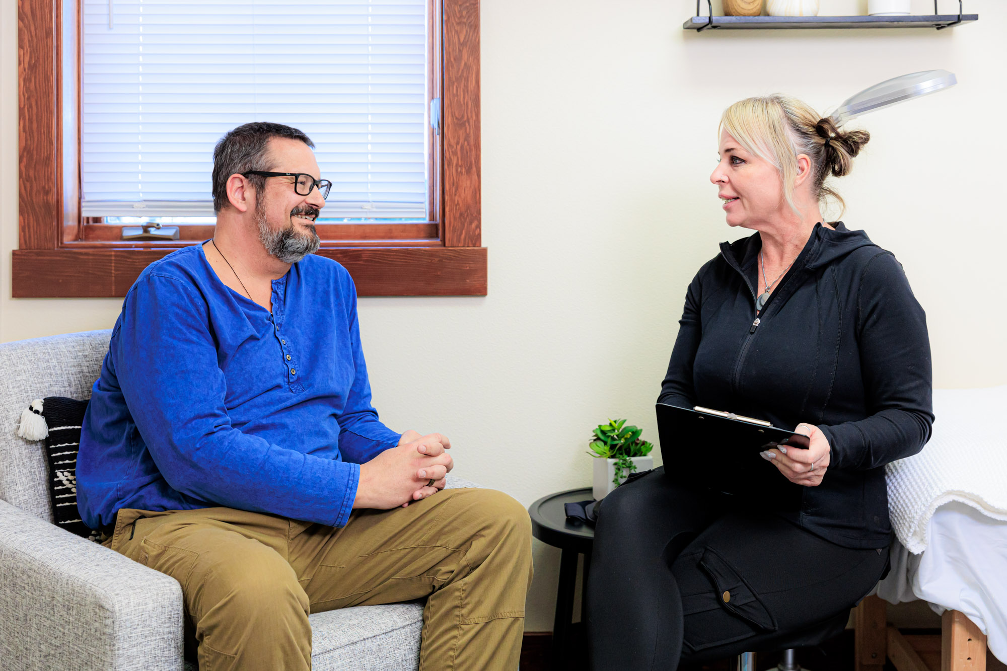 Relaxed conversation about your symptoms, goals, and health history. In-person or telehealth.